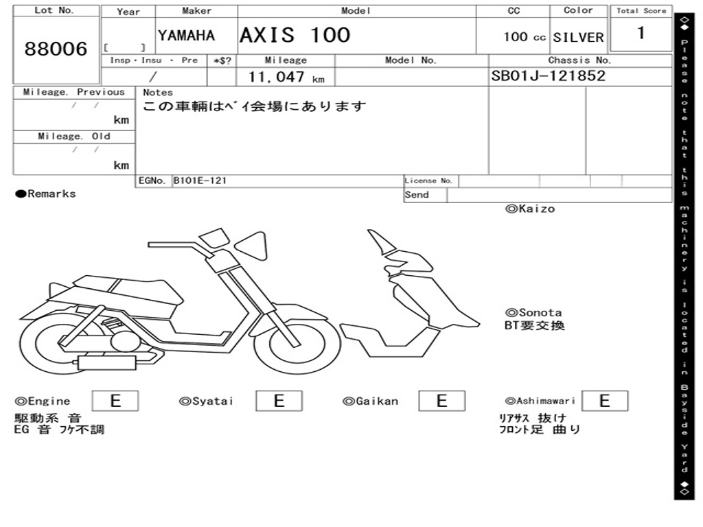 | Номер рамы / VIN | SB01J-121852 |