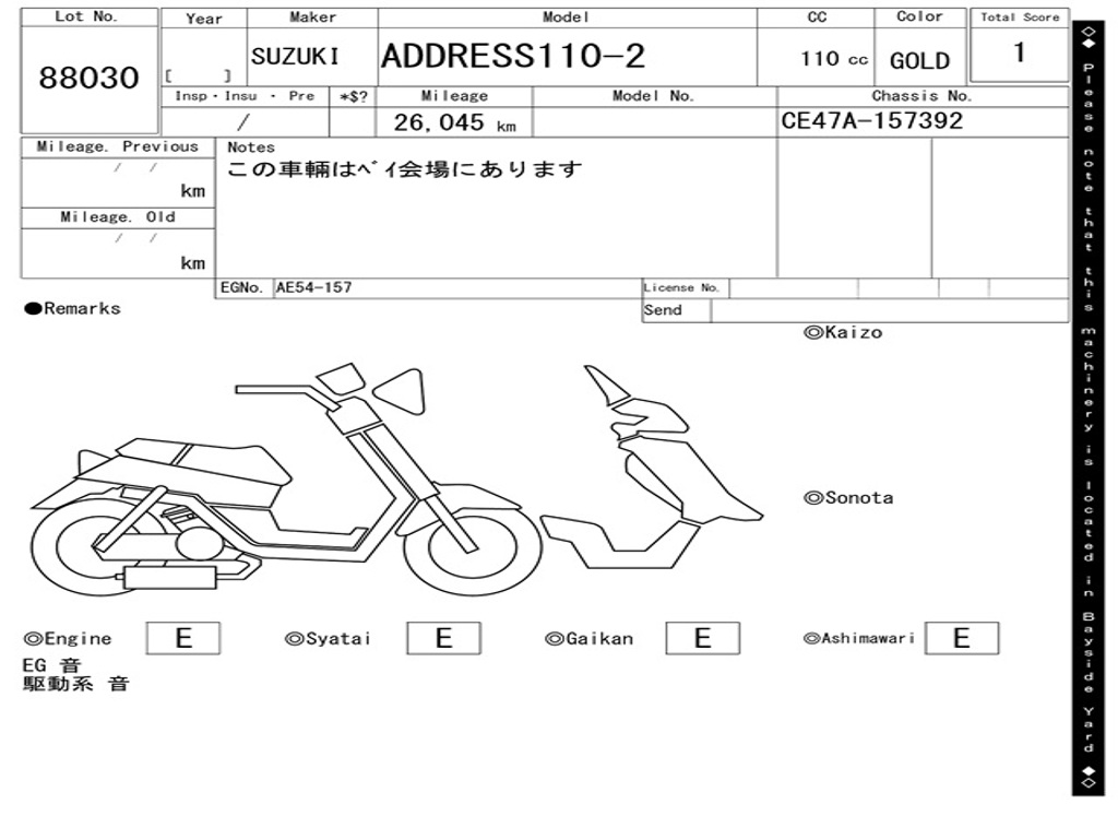 | Номер рамы / VIN | CE47A-157392 |