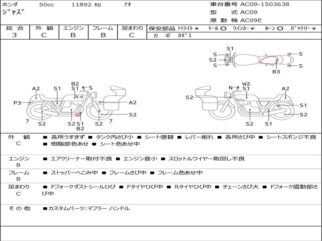 | Номер рамы / VIN | AC09-1503638 |