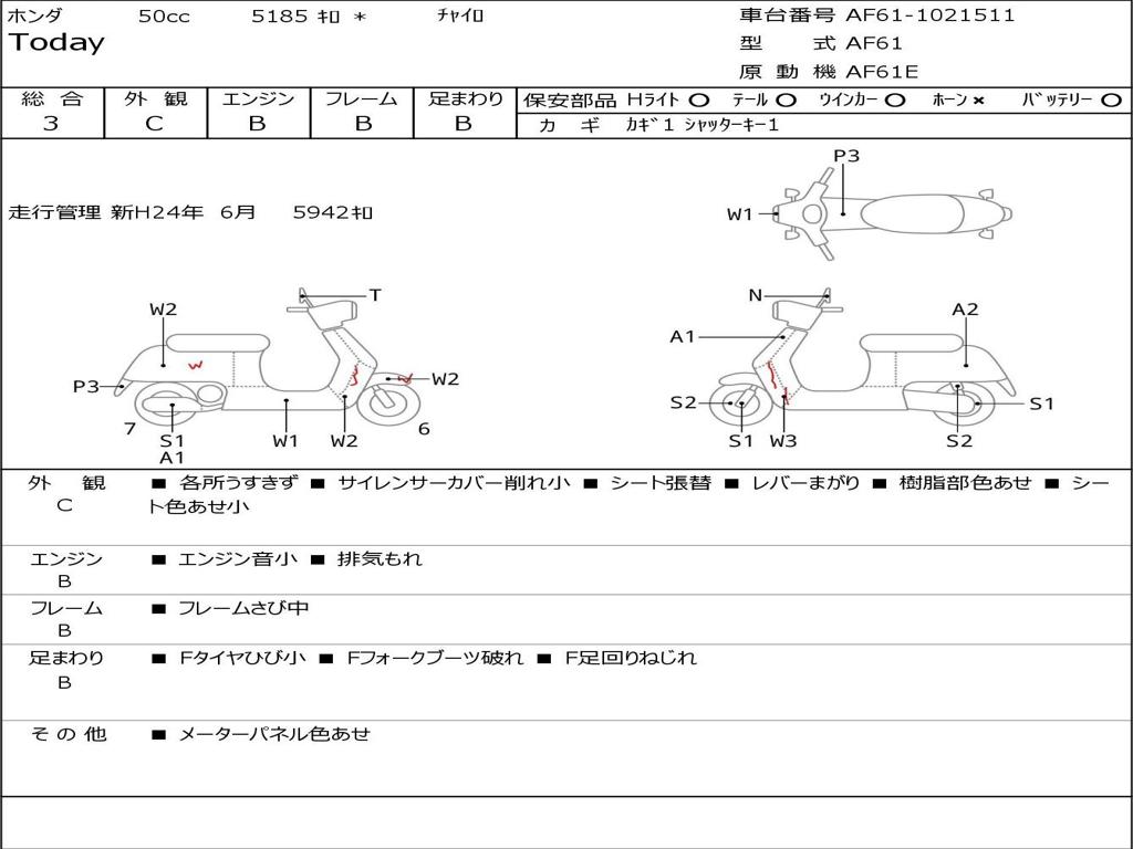 | Номер рамы / VIN | AF61-1021511 |