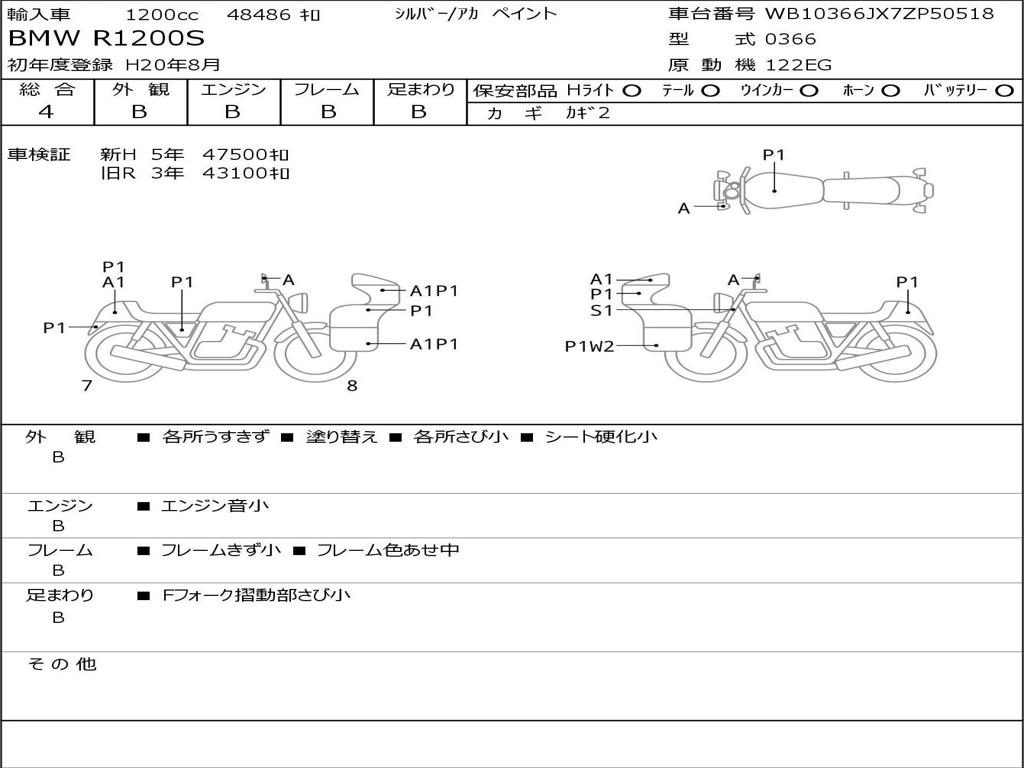 | Номер рамы / VIN | WB10366JX7ZP50518 |