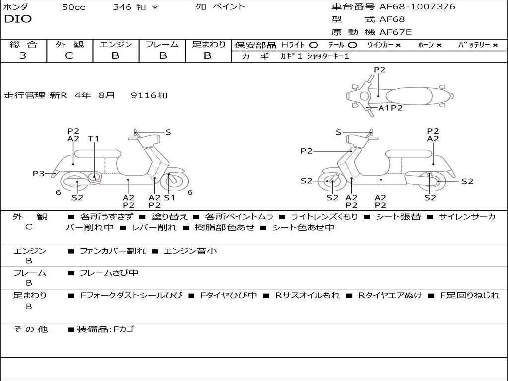 | Номер рамы / VIN | AF68-1007376 |