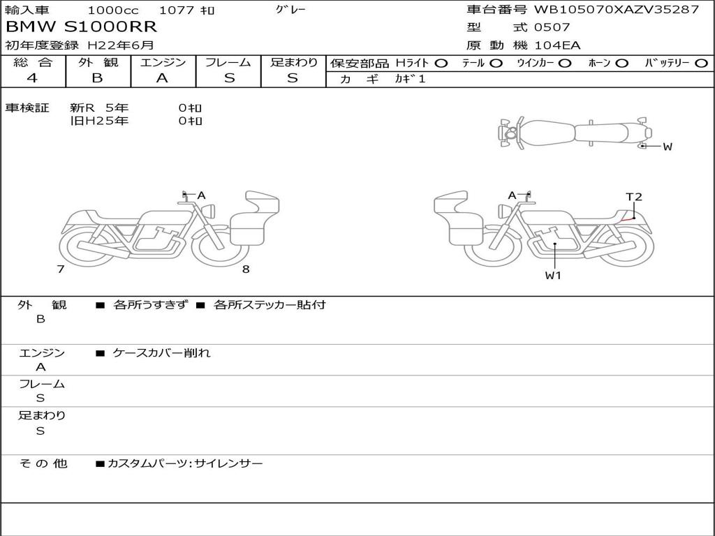 | Номер рамы / VIN | WB105070XAZV35287 |