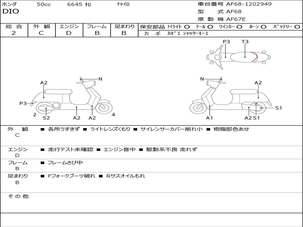| Номер рамы / VIN | AF68-1202949 |