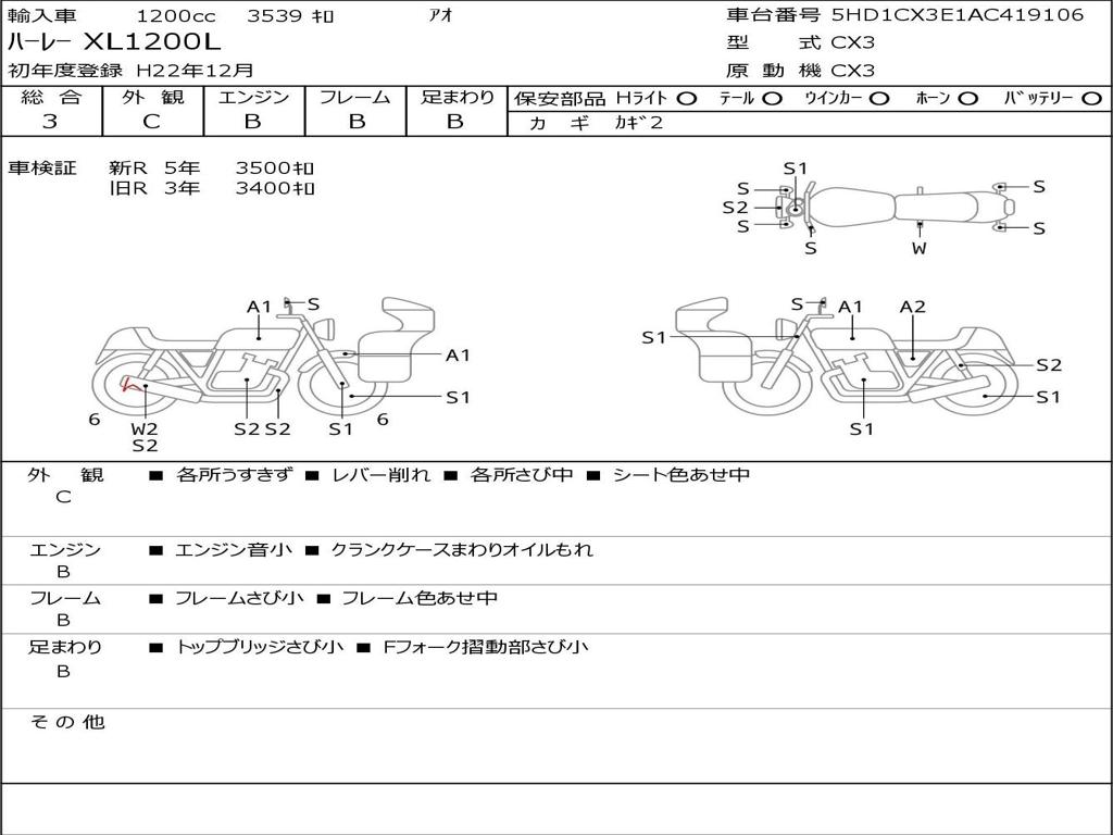 | Номер рамы / VIN | 5HD1CX3E1AC419106 |