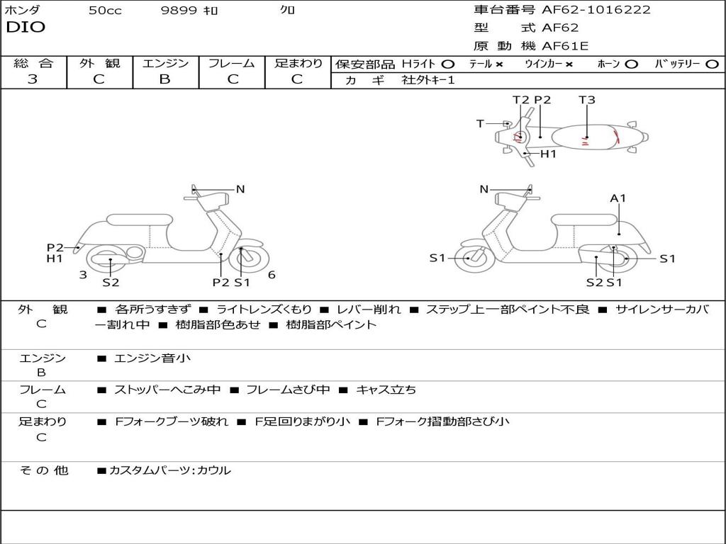 | Номер рамы / VIN | AF62-1016222 |