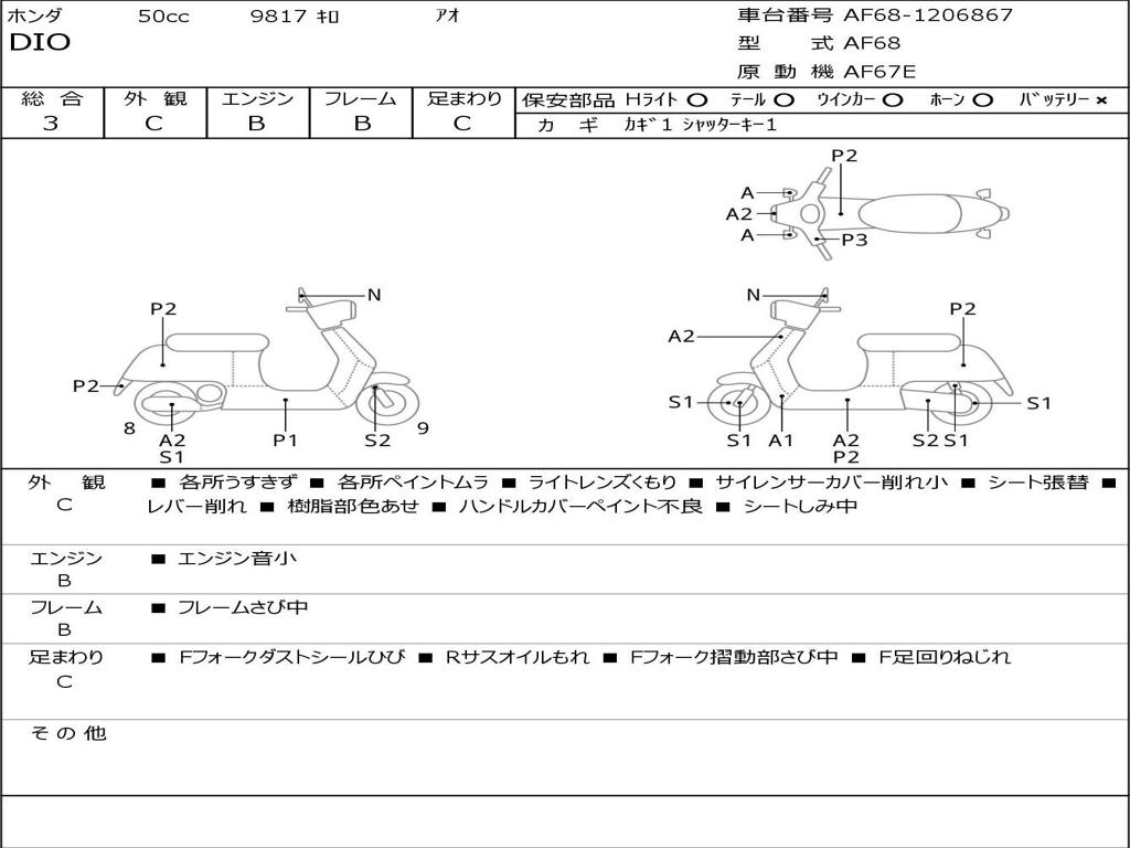 | Номер рамы / VIN | AF68-1206867 |