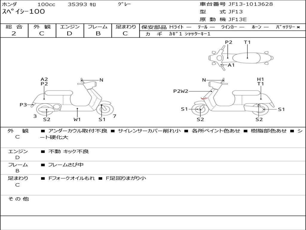 | Номер рамы / VIN | JF13-1013628 |