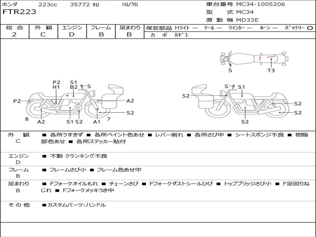 | Номер рамы / VIN | MC34-1005206 |