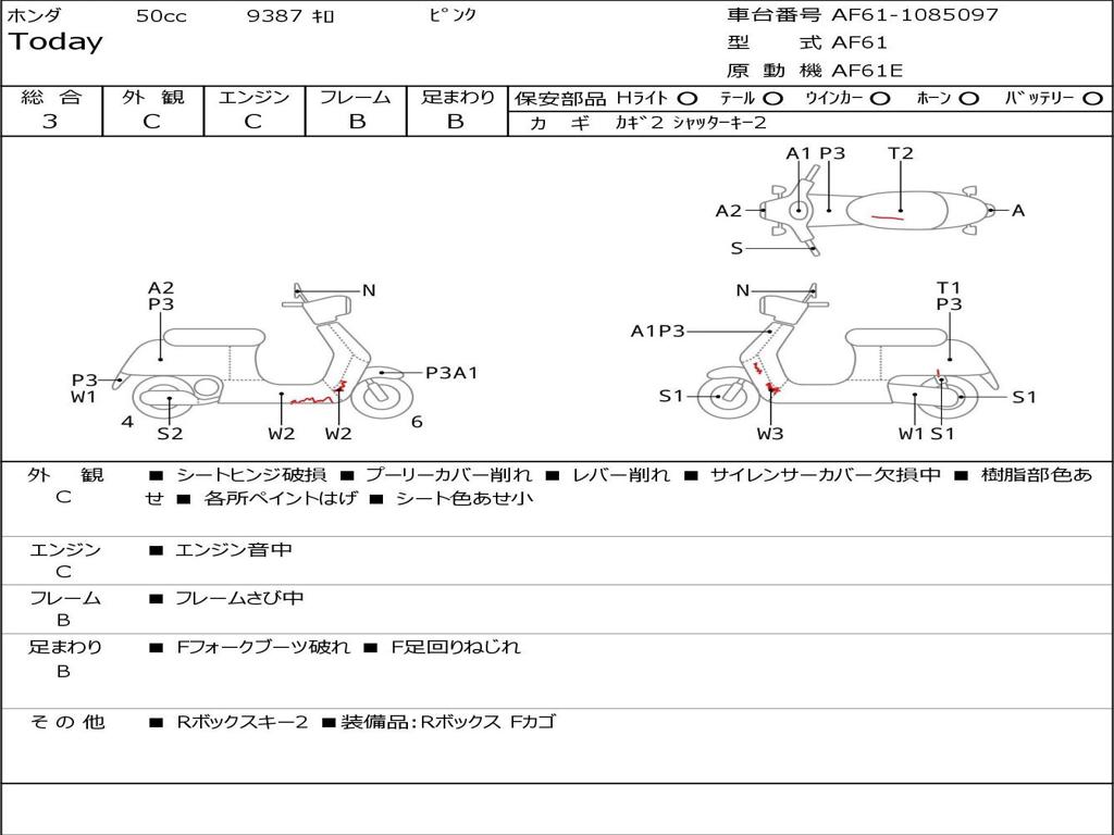 | Номер рамы / VIN | AF61-1085097 |