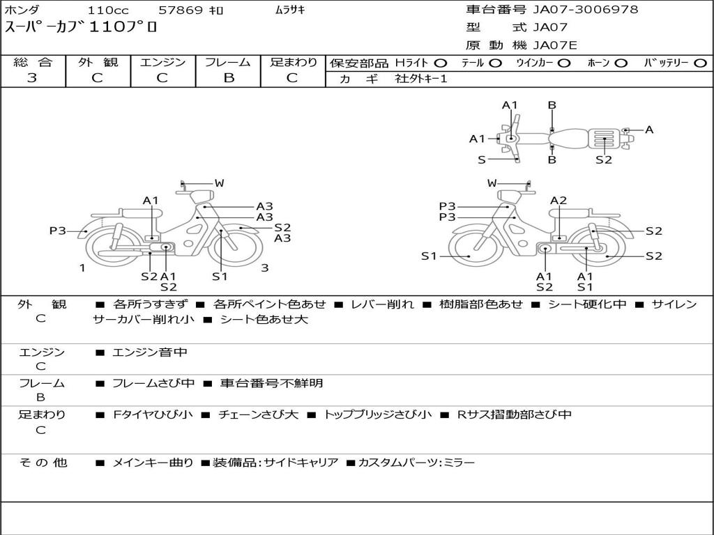| Номер рамы / VIN | JA07-3006978 |