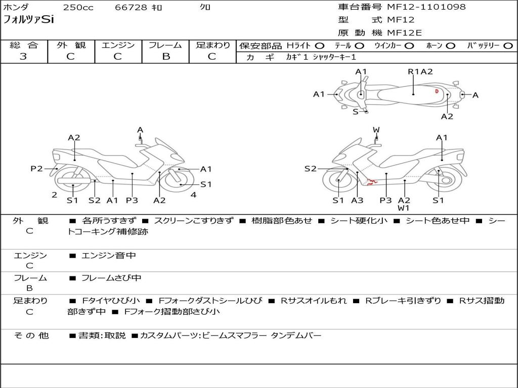 | Номер рамы / VIN | MF12-1101098 |