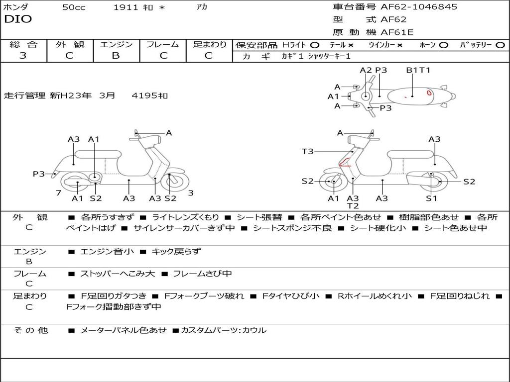 | Номер рамы / VIN | AF62-1046845 |