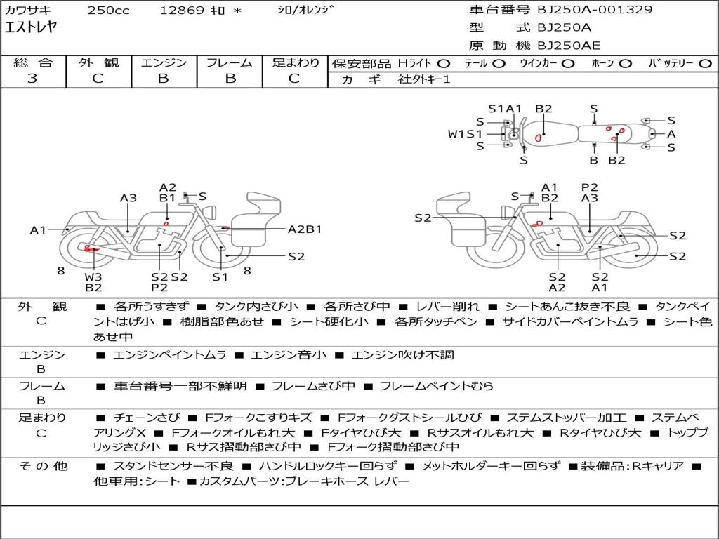 | Номер рамы / VIN | BJ250A-001329 |