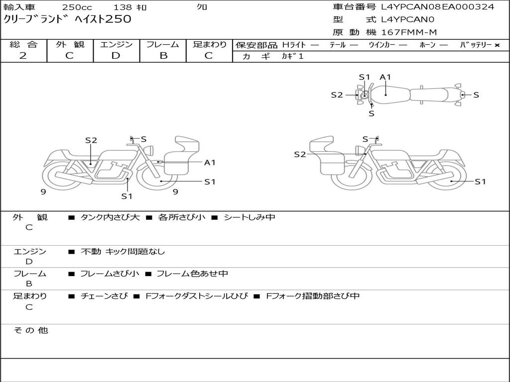 | Номер рамы / VIN | L4YPCAN08EA000324 |