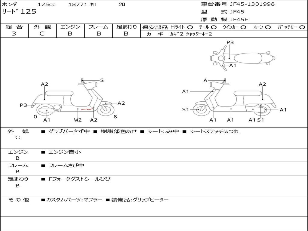 | Номер рамы / VIN | JF45-1301998 |