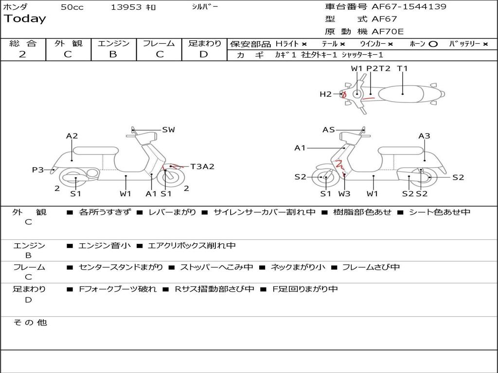 | Номер рамы / VIN | AF67-1544139 |