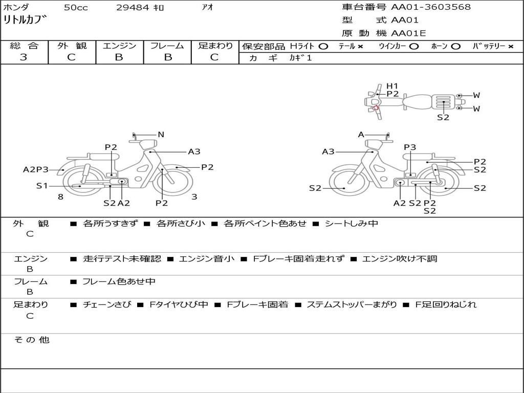 | Номер рамы / VIN | AA01-3603568 |