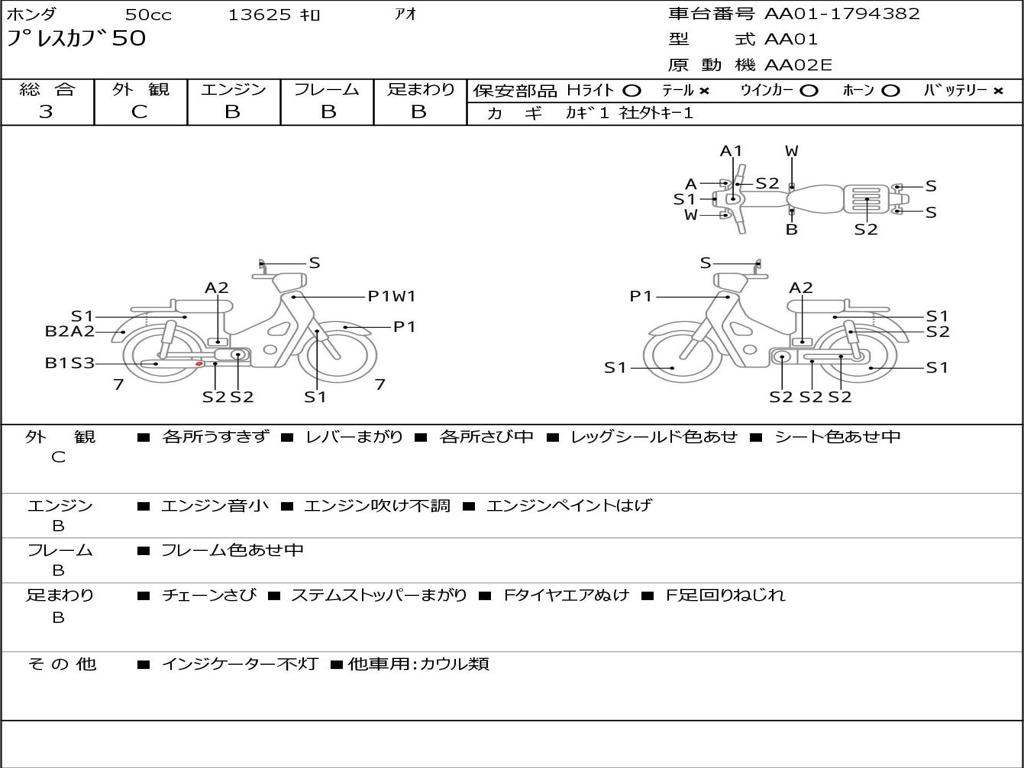 | Номер рамы / VIN | AA01-1794382 |