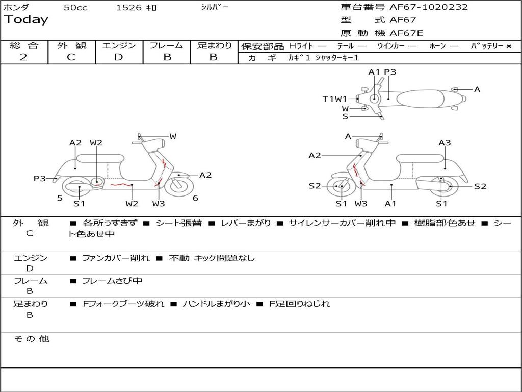 | Номер рамы / VIN | AF67-1020232 |
