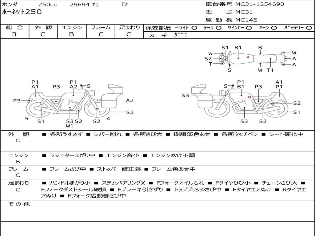 | Номер рамы / VIN | MC31-1254690 |