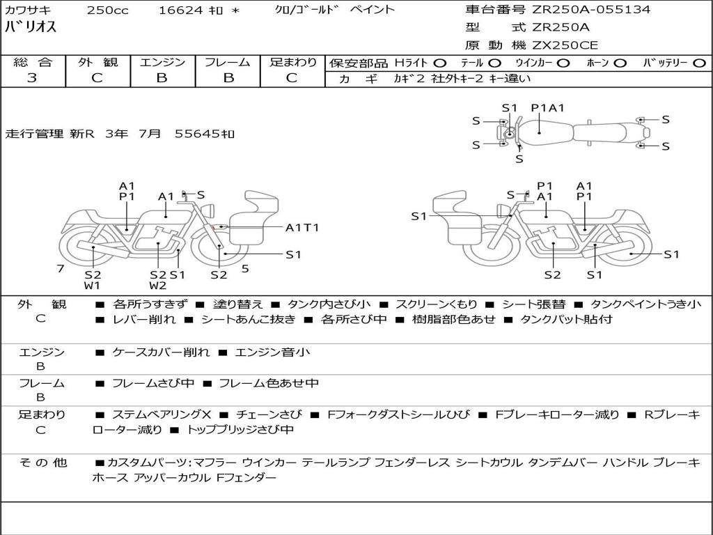 | Номер рамы / VIN | ZR250A-055134 |