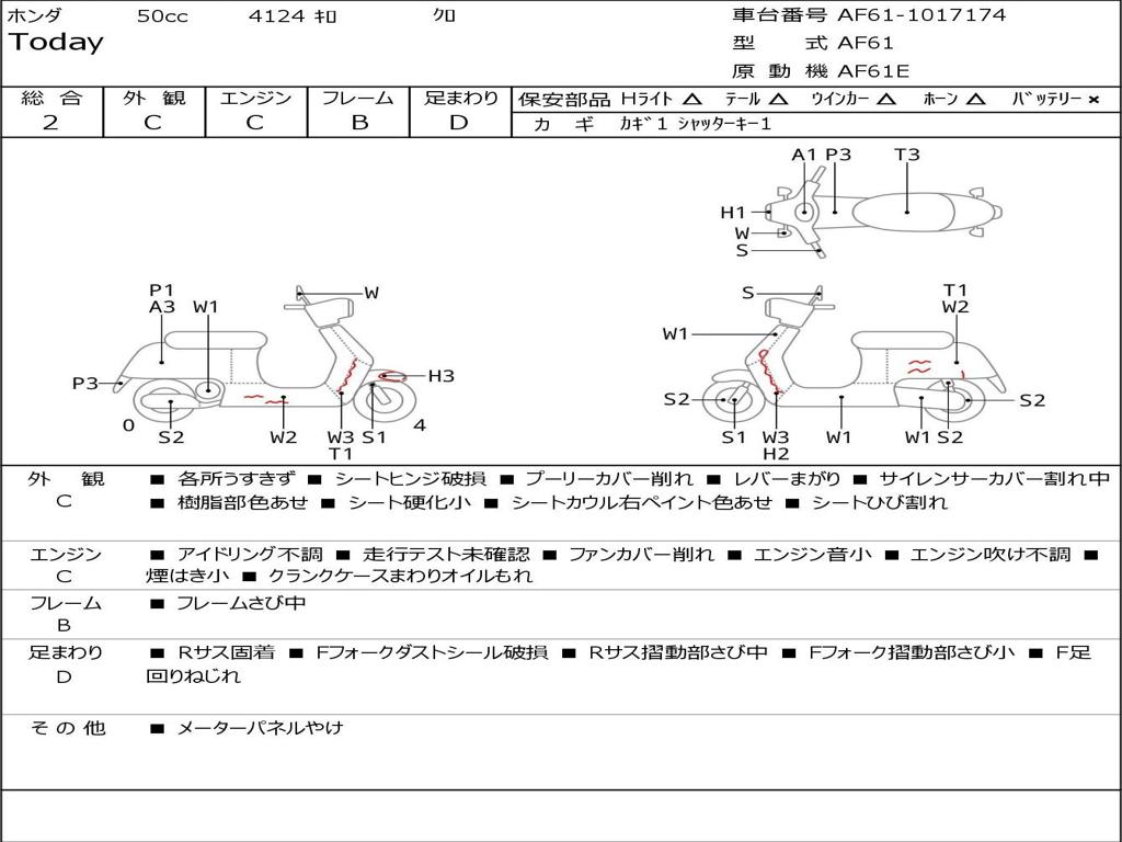 | Номер рамы / VIN | AF61-1017174 |