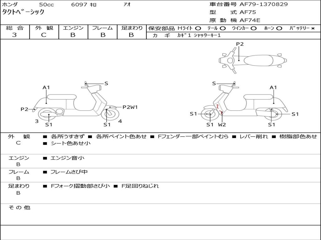 | Номер рамы / VIN | AF79-1370829 |