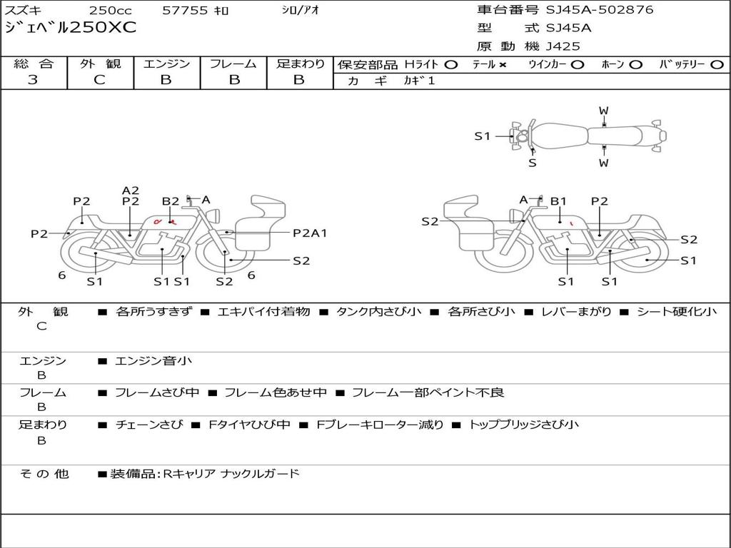 | Номер рамы / VIN | SJ45A-502876 |