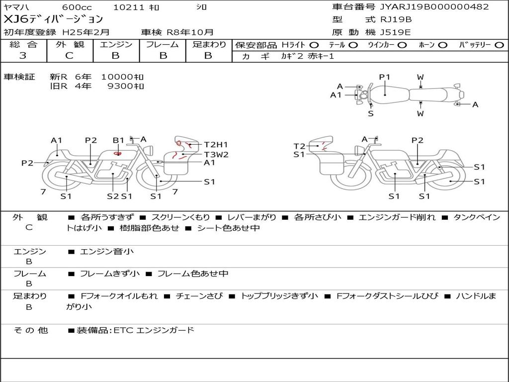 | Номер рамы / VIN | JYARJ19B000000482 |