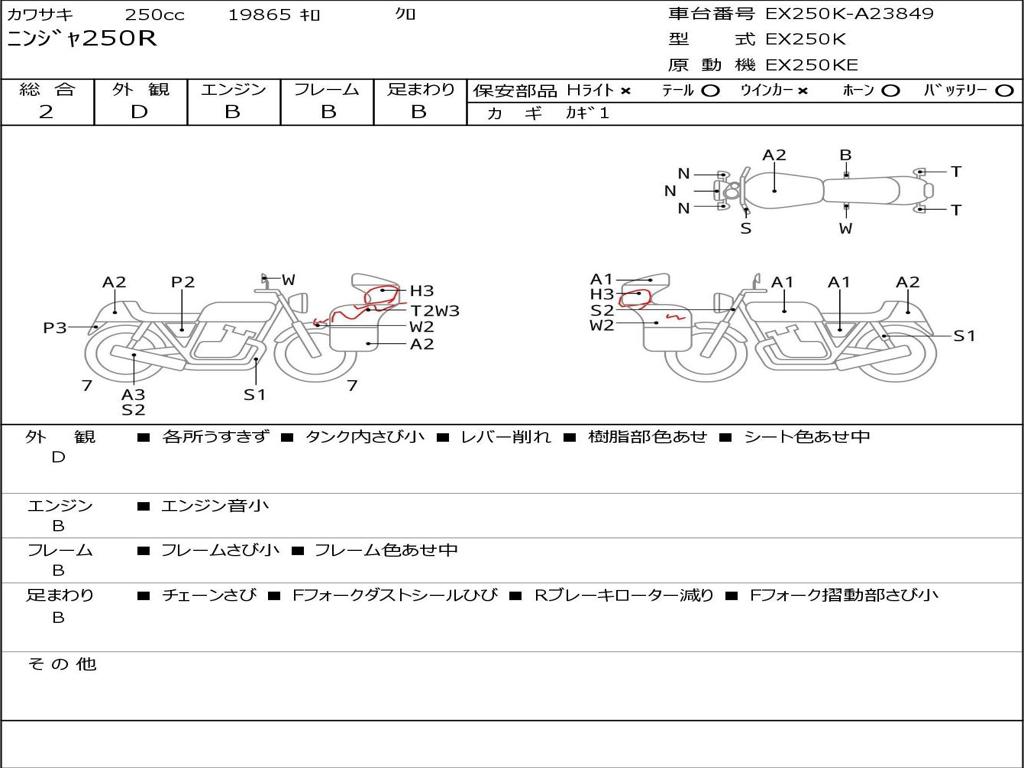 | Номер рамы / VIN | EX250K-A23849 |