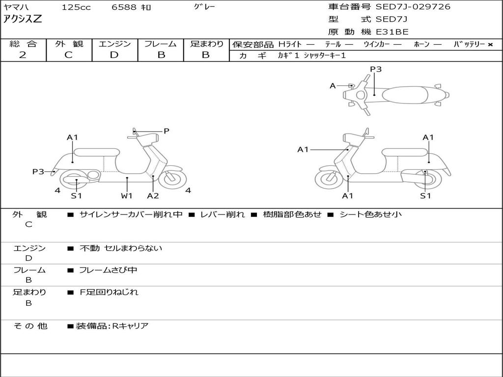 | Номер рамы / VIN | SED7J-029726 |
