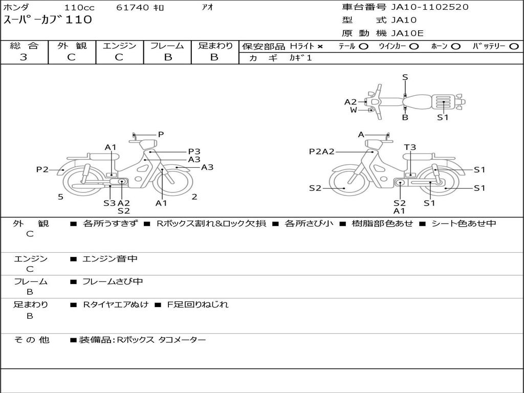 | Номер рамы / VIN | JA10-1102520 |