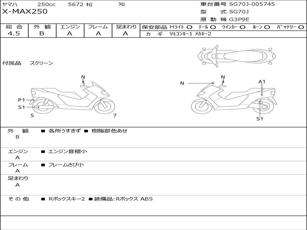 | Номер рамы / VIN | SG70J-005745 |