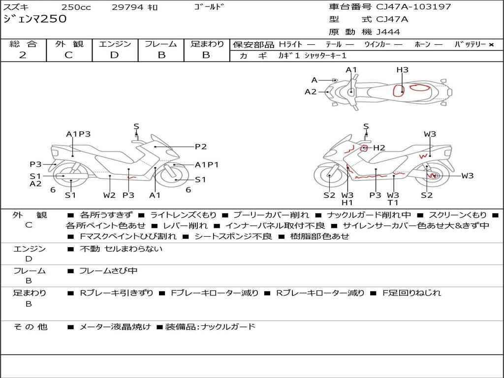 | Номер рамы / VIN | CJ47A-103197 |