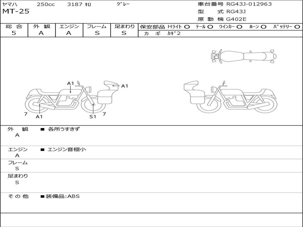 | Номер рамы / VIN | RG43J-012963 |