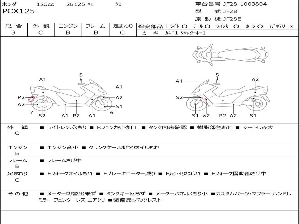| Номер рамы / VIN | JF28-1003804 |