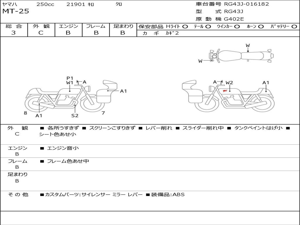 | Номер рамы / VIN | RG43J-016182 |
