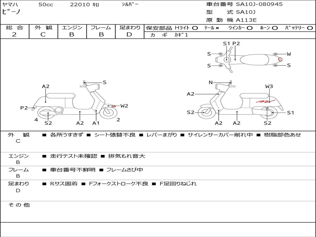 | Номер рамы / VIN | SA10J-080945 |