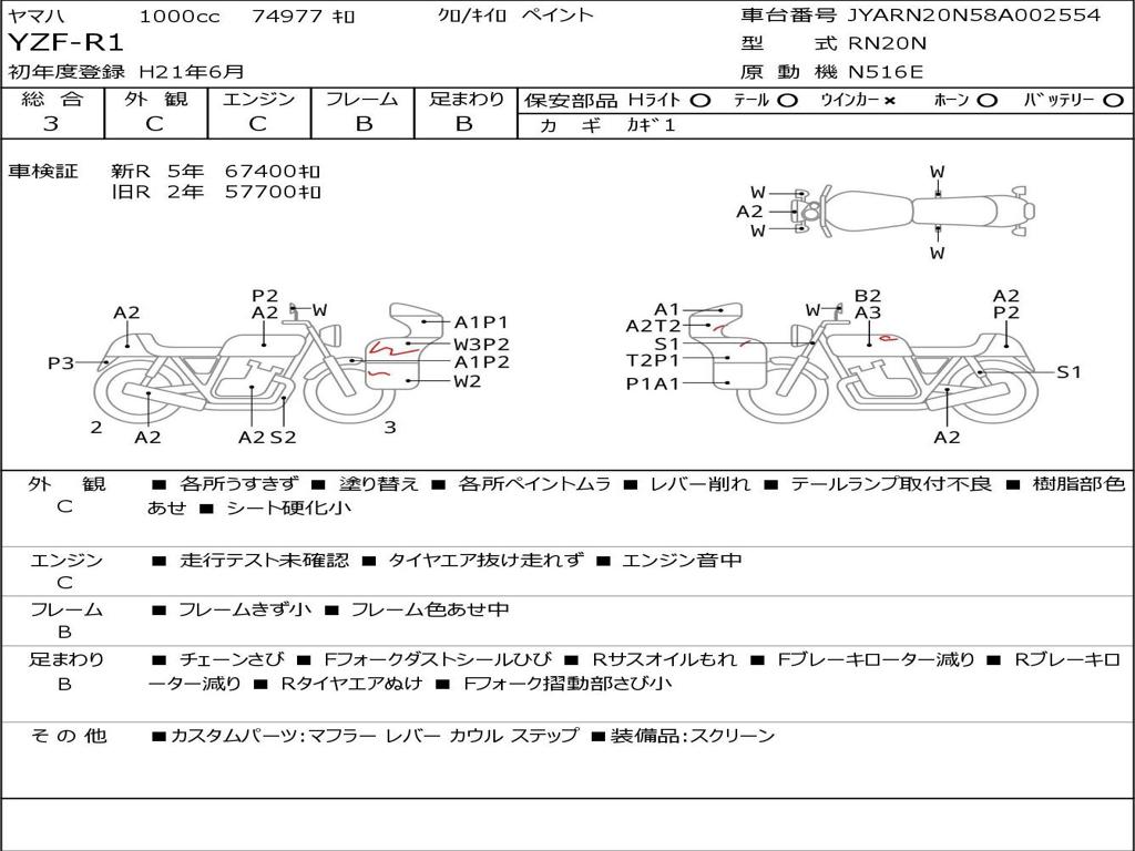 | Номер рамы / VIN | JYARN20N58A002554 |
