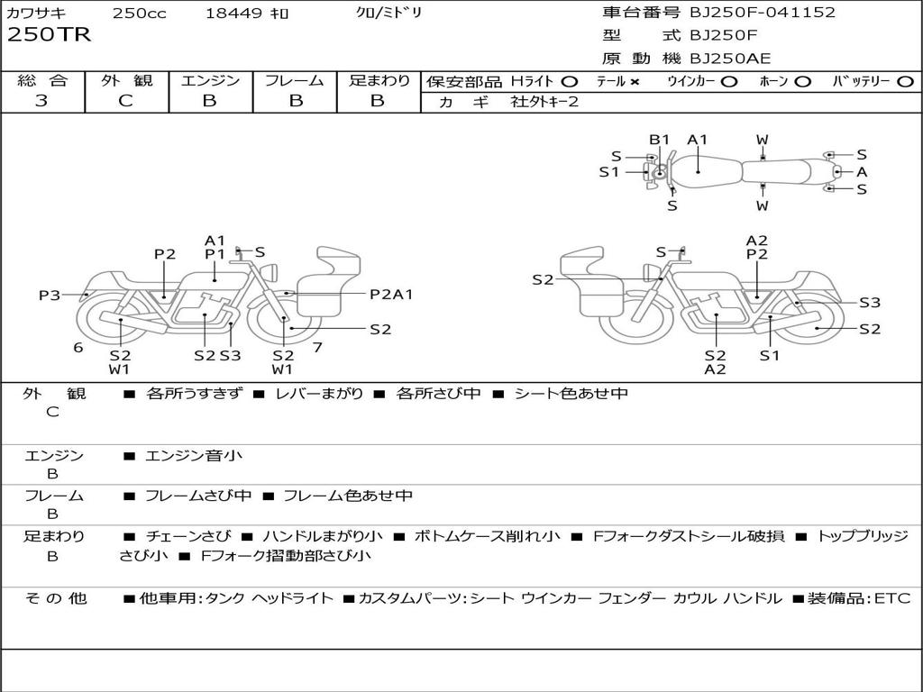 | Номер рамы / VIN | BJ250F-041152 |