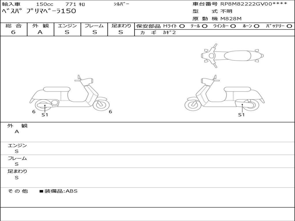 | Номер рамы / VIN | RP8M82222GV001314 |
