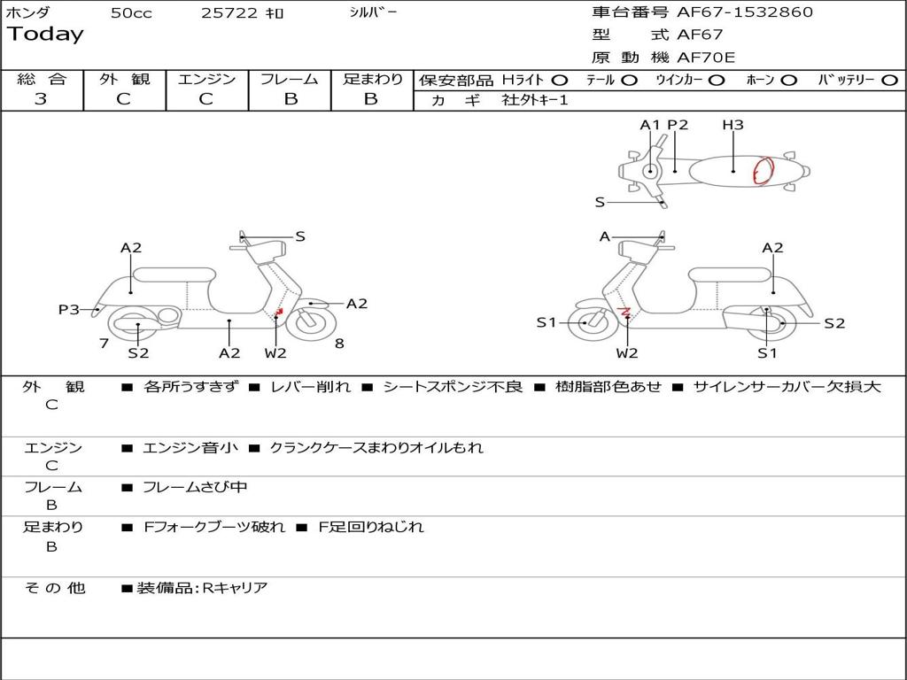 | Номер рамы / VIN | AF67-1532860 |