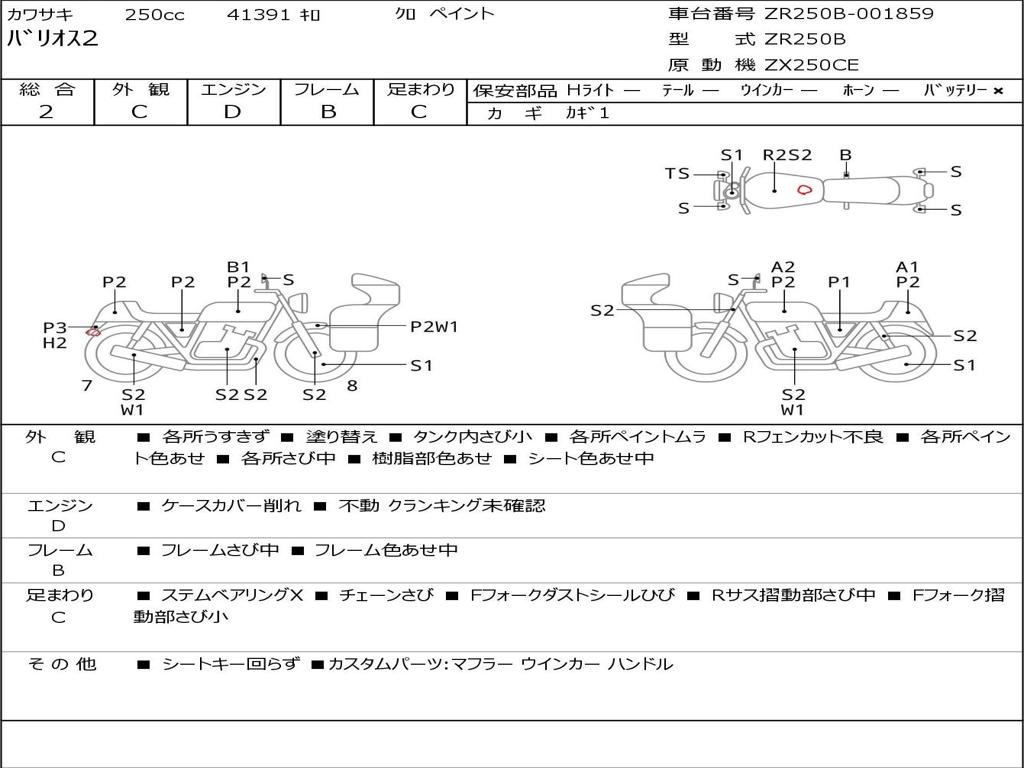 | Номер рамы / VIN | ZR250B-001859 |