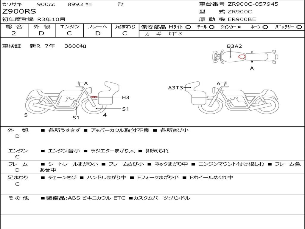 | Номер рамы / VIN | ZR900C-057945 |