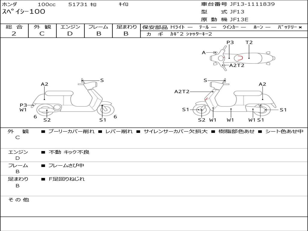 | Номер рамы / VIN | JF13-1111839 |