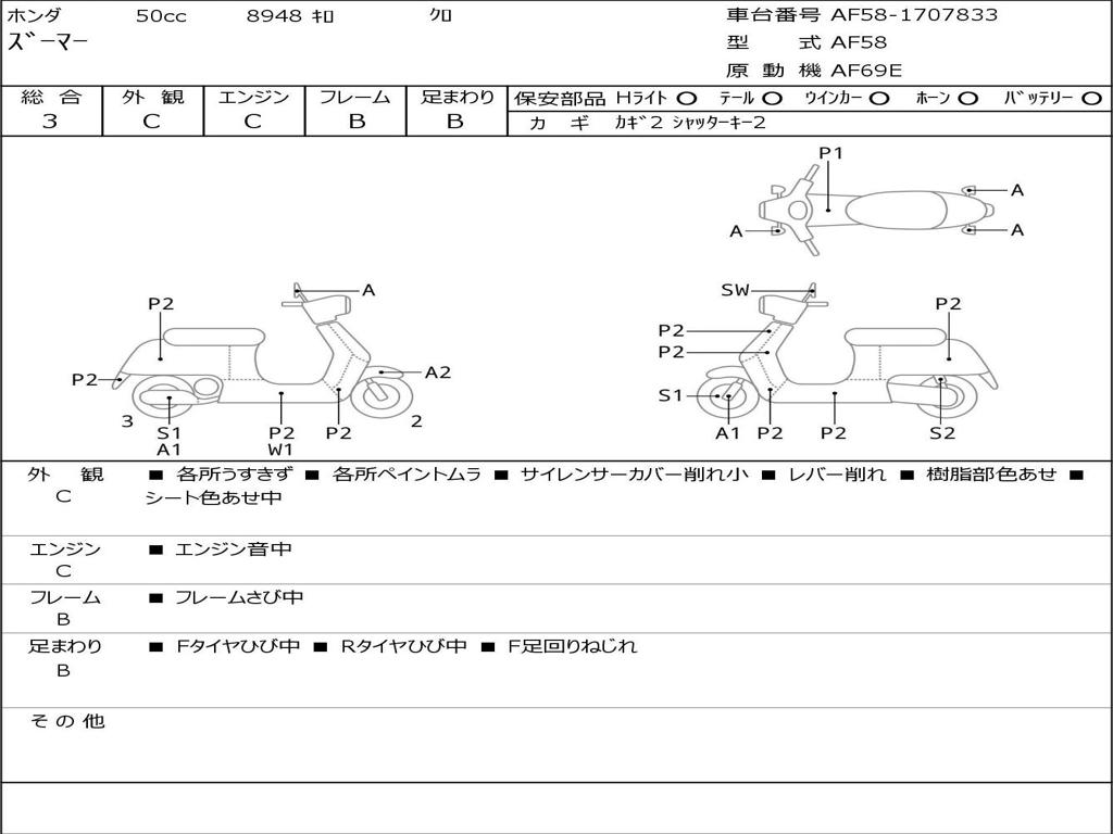 | Номер рамы / VIN | AF58-1707833 |