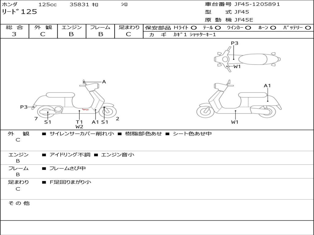 | Номер рамы / VIN | JF45-1205891 |