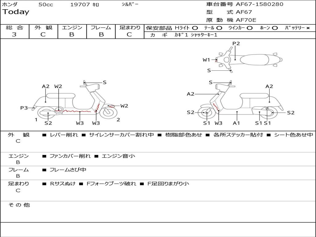 | Номер рамы / VIN | AF67-1580280 |