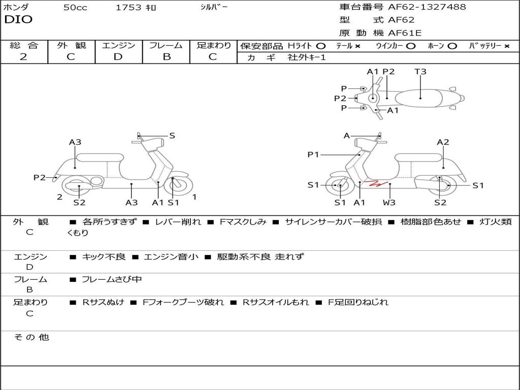 | Номер рамы / VIN | AF62-1327488 |